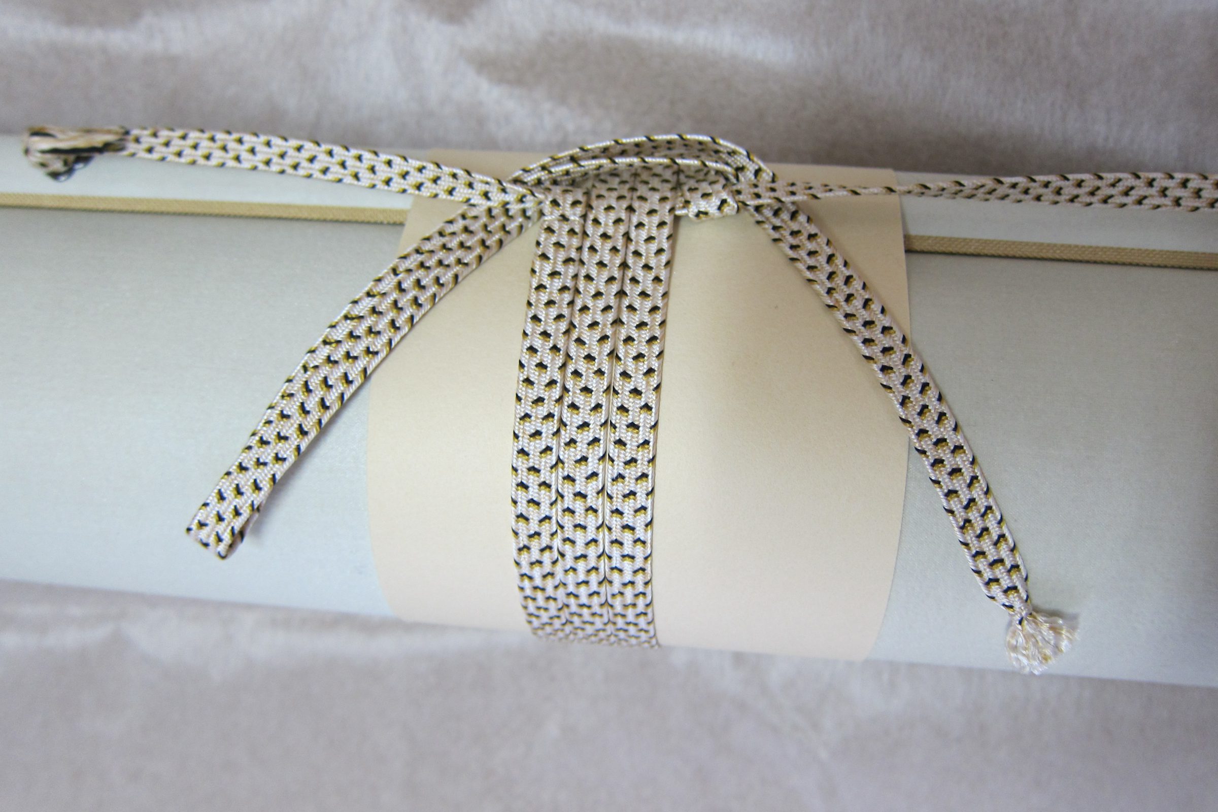 ここからは、①鳥の子を八又に挟んで(いつも忘れる)からの、②③巻緒の結び方、おさらい写真です。