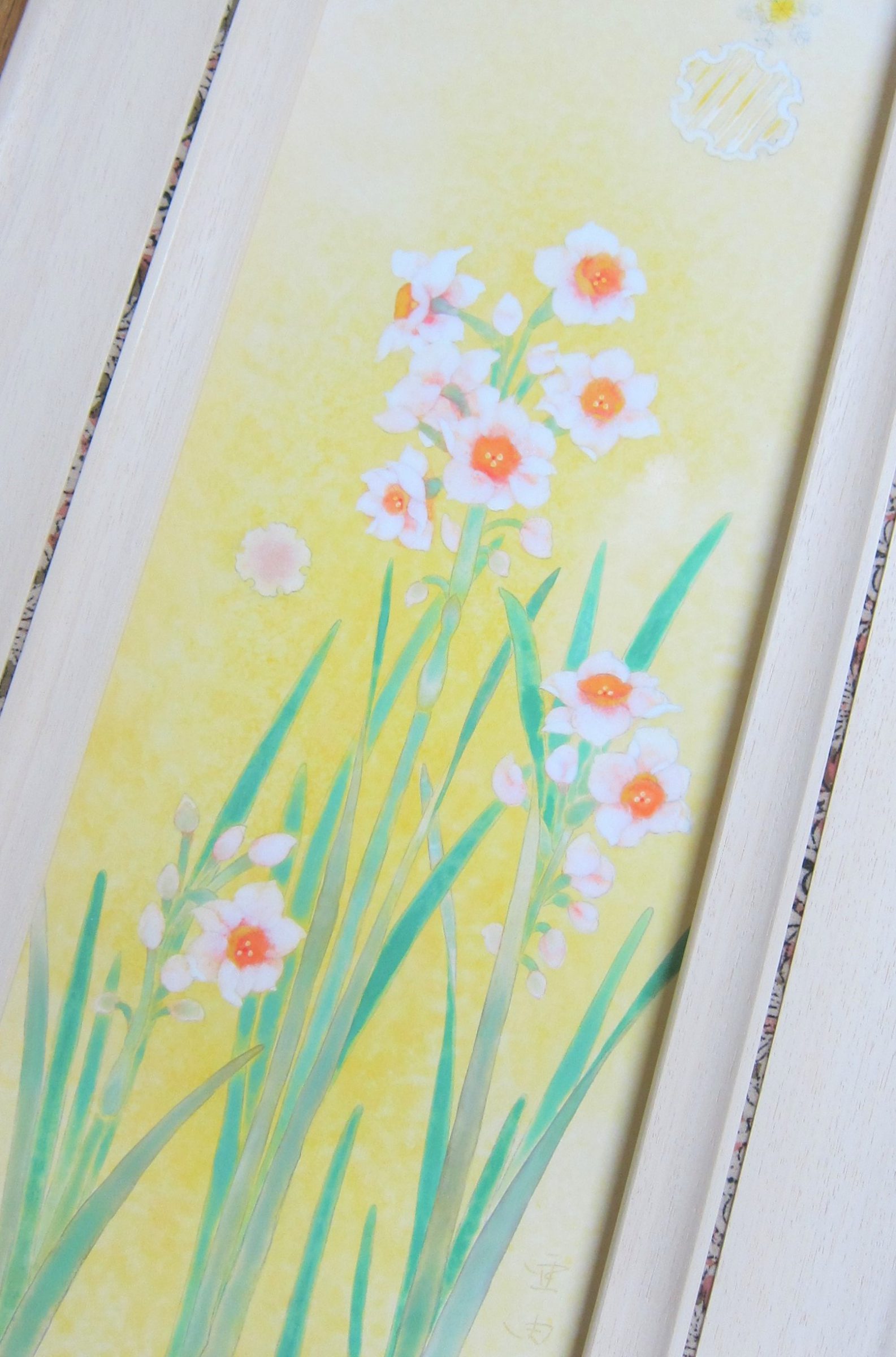 扇子の原画ではありませんが、宮脇賣扇庵さんとのコラボでこの度モチーフになりました水仙と雪輪を描いています。